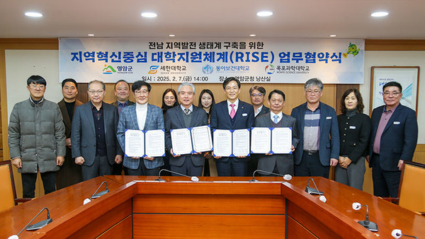 영암군은 전남 서부권 3개 대학인 세한대·동아보건대·목포과학대와 7일 ‘지역혁신중심 대학지원체계(RISE)사업협력 업무협약’을 맺었다.