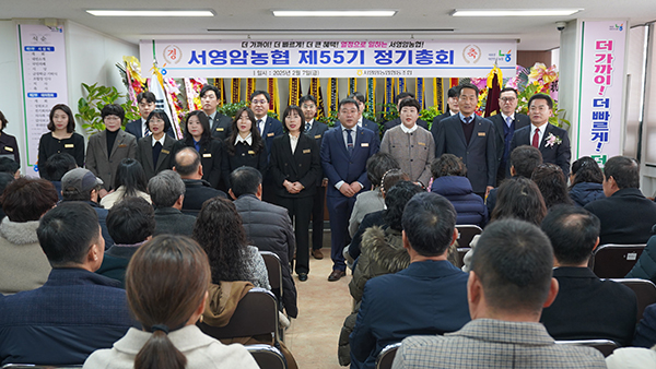 서영암농협(조합장 김원식)은 7일 본점 2층 회의실에서 2024년 결산에 따른 제55기 정기총회와 군민장학금 전달식, 모범 조합원 및 직원에 대한 시상식을 가졌다.