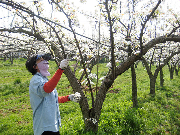 주요 재배품종인 ‘신고배’는 자가 수분이 어려운 품종이지만, ‘설화리’ ‘추황’ 등 품종의 수입 꽃가루로 수정이 가능하다.