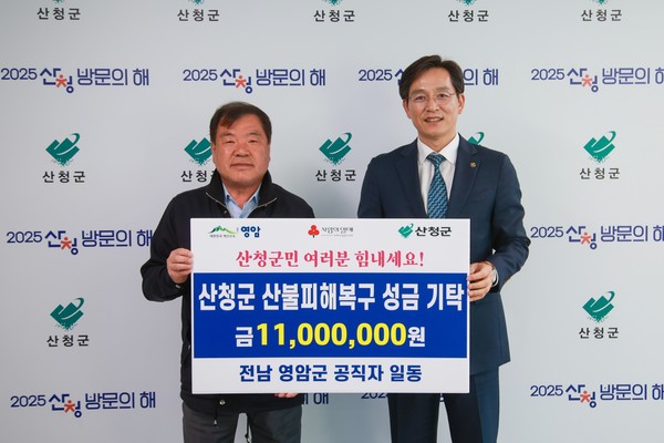 영암군은 성금 전달에 앞서 지난달 28일에는 산불 진화 인력과 이재민을 보호하는 담요와 등산양말 등 1톤 트럭 1대 분량의 구호물품을 산청군에 전달했다.