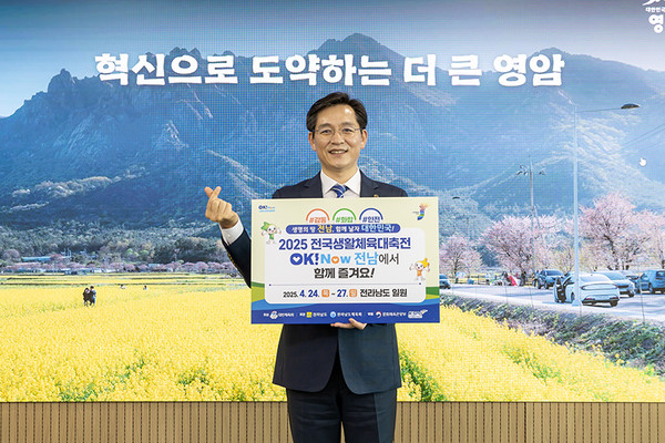 ‘2025 전국 생활체육대축전’이 이달 24일부터 27일까지 전라남도 일원에서 개최될 예정인 가운데 우승희 군수가 16일 군청에서 ‘2025 전국 생활체육대축전’의 성공개최를 염원하는 전남 시·군 단체장 릴레이 챌린지에 마지막 주자로 참여했다.