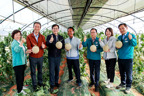 지난 1월 10일, 박점우 씨는 올해 7동 규모의 시설 하우스에 멜론 모종을 심고 이후 3개월 넘게 정성을 기울인 멜론을 이날 수확하며 첫 출하의 기쁨을 나눴다.