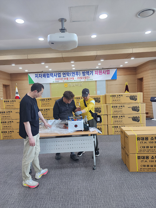 영암축협은 이에 따라 희망 농가를 대상으로 대당 약 48만원 짜리 연막 방역기를 군비 50%, 중앙회10%, 축협15%, 농가 자부담 25%의 조건으로 133대를 보급할 계획이다.