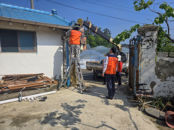 영암읍 지역사회보장협의체(공동위원장 김남두, 전의홍)는 12일 사자마을 한 취약계층 가구를 찾아 무너질 위기에 처한 위험한 대문 기둥을 철거했다.