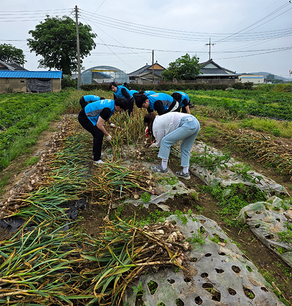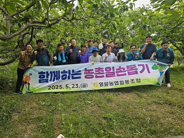 영암농협은 23일 박도상 조합장과 직원 20여 명이 참여한 가운데 영농작업에 어려움을 겪고 있는 농가를 찾아 과수원 열매쏙기 작업을 도왔다. 농어촌공사 영암지사도 전지영 지사장을 비롯한 직원 30여 명이 참여한 가운데 23일 영암읍 망호리 농가를 방문하여 마늘재배 농가에서 구슬땀을 흘리며 마늘 뽑기 작업을 도왔다.