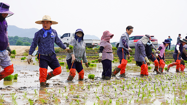 지난해에 이어 두 번째로 열린 손 모내기는 우승희 군수, 박종대 군의장, 손남일 도의원, 이만진 군의원과 농협 관계자 및 단지 주민 등 50여 명이 참여했다.