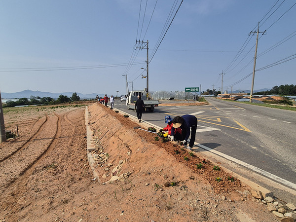 도포면 위원회는 도포면 함반동길 입구 도로변에 메리골드 등의 꽃을 식재하며 주변 환경정비 및 꽃길 가꾸기를 실시했다. 모내기 등 바쁜 농사에도 많은 회원들이 참여하여 함반동길 입구 일대를 정비했다.