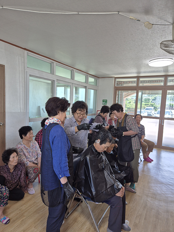 또 이날 오후부터는 도포면 원목마을, 함반동 마을회관에서 고령자, 독거노인, 취약계층을 대상으로 머리 염색 등 이·미용 봉사를 했다.