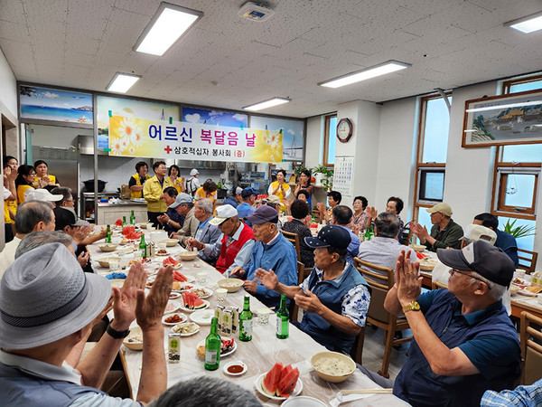 대한적십자사 삼호읍봉사회(회장 임애순)는 18일 삼호읍종합복지회관에서 어르신 70여 명을 초청해 ‘초복맞이 사랑의 복달임 행사’를 개최했다.