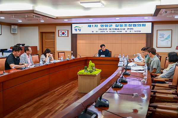 영암군이 12일 군청에서 미암면의 한 대기배출 시설운영 관련 주민·업체 간 의견 조율 등을 위해 ‘제1차 갈등조정협의회’를 개최했다.