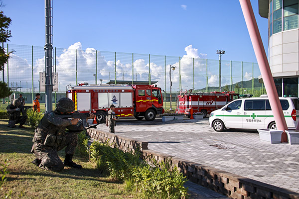 영암군과 경찰서, 소방서, 해군3함대사령부, 육군 제8539부대 3대대, 한국전력공사, KT영암지점, 영암자율방재단은 19일 국민체육센터에서 ‘드론 테러 대응 실제 훈련’을 실시했다. 이날 훈련은 국민체육센터에 드론 테러로 인한 폭발과 화재가 발생한 상황을 가정해 참여 기관은 부여받은 전시 임무에 따라 대응과정을 점검하고 협력체계를 다졌다. 이튿날인 20일에는 공습 대비 민방위 훈련을 실시해 군민 안전 확보 방안도 살폈다.