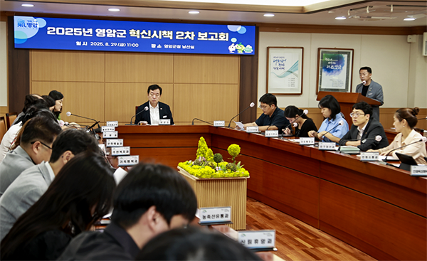 영암군은 지난달 29일 낭산실에서 ‘2025년 혁신시책 2차 보고회’를 열고, 25개 실과소에서 제안한 혁신시책 58건의 추진 현황을 중간 점검했다.