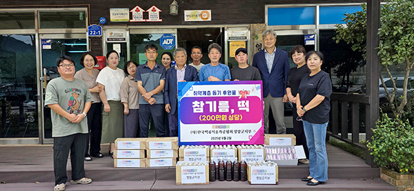 (사)한국떡류식품가공협회 영암군지부(지부장 김형태)는 지난 2일 영암지역자활센터를 방문, 참기름 500㎖ 85병, 1천500㎖ 5병, 떡 10박스(200만원 상당)를 취약계층에 전해달라며 기탁했다.