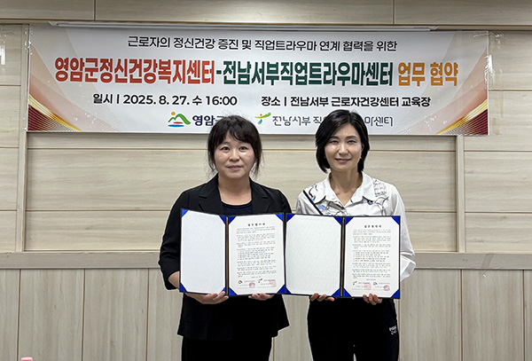 영암군보건소 정신건강복지센터는 지난 달 27일 전남서부직업트라우마센터와 근로자 정신건강 협력체계 구축 및 상호 업무교류 활성화 업무협약을 체결했다.
