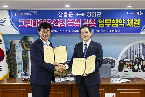 영암군(우승희 군수)과 장흥군(김성 군수)이 손을 맞잡고 그린바이오산업 육성을 위한 상생 협력에 나섰다.
