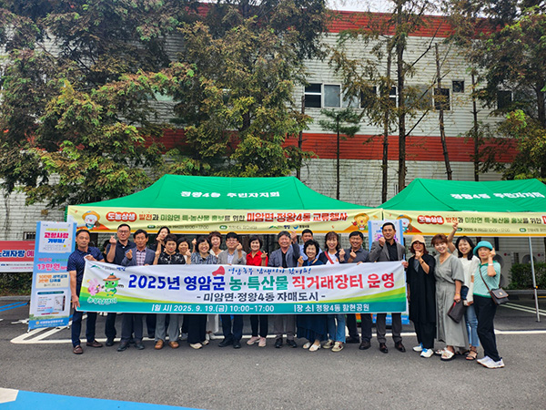 미암면이 서영암농협과 19일 자매결연도시 경기 시흥시 정왕4동 함현공원에서 도농교류 직거래장터를 열었다.
