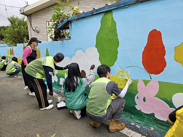 영암군새마을회(회장 박찬)가 지난 9월 20일 서호면 엄길마을에서 ‘아름다운 우리마을’ 벽화 그리기 프로젝트’를 진행했다. 이번 활동은 벽화 그리기 전문 봉사단체인 두드림을 중심으로 영암군새마을회, 세한대학 새마을동아리 회원 20명과 함께 넓은 벽면을 화려한 색상의 꽃들과 나무들로 가득 채워가며 마을 경관을 새롭게 가꾸기 위해 구슬땀을 흘렸다.