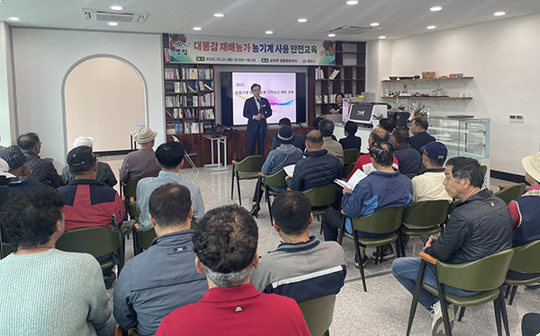 지난 21일 금정 생활문화센터에서 대봉감 재배 농업인 100여 명이 참석한 가운데 농기계 안전 교육을 받았다.