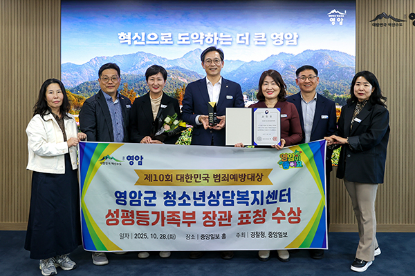 영암군 청소년상담복지센터가 28일 ‘제10회 대한민국 범죄예방대상’에서 사회적 약자보호 부문 최우수기관으로 선정돼 성평등가족부장관 표창을 수상했다.