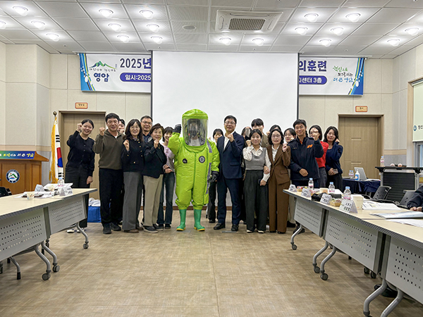 영암군보건소가 12일 보건소에서 유관기관과 ‘2025년 생물테러 대응 소규모 모의훈련’을 실시했다.