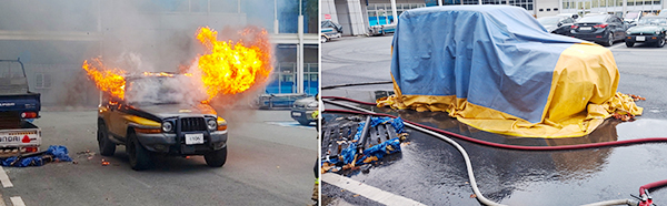 이날 화재로 소방대원 21명과 장비 7대를 투입해 오후 5시 33분쯤 불을 껐다. 다행히 인명피해는 발생하지 않았으나, 차량이 전소돼 소방서 추산 2천750만 원의 재산 피해가 났다.
