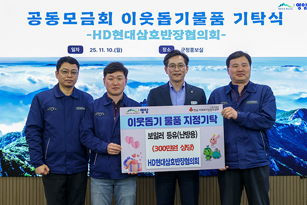 10일 HD현대삼호반장협의회(회장 이정재)는 어려운 이웃의 건강하고 따뜻한 겨울나기를 위해 써달라며 300만원 상당의 난방용 보일러 등유를 영암군에 전달했다. HD현대삼호반장협의회는 현대삼호중공업 생산기술직 회원 600여 명으로 구성된 단체로 영암군 취약계층을 위해 꾸준히 나눔을 실천해 오고 있다