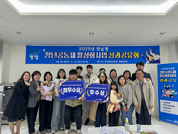 평가위원들은 4개 청년공동체의 프레젠테이션 발표를 듣고, ‘숲숲영암’을 올해 최우수 공동체로 선정했다. ‘숲숲영암’은 이달 21일 열리는 ‘2025년 전남형 청년공동체 성과공유회’에 영암군 대표로 참가한다.