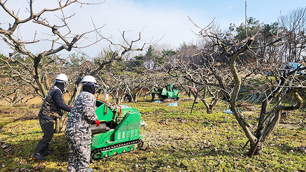 영농부산물 파쇄지원단이 농가를 방문해 무료로 영농부산물을 파쇄하는 방식으로 진행되는 이 사업은 불법 소각을 줄여 산불을 예방하고, 미세먼지도 줄여 농업환경 개선을 위해 고추대, 콩대, 참깨대, 과일나무 가지 등이 대상이다.
